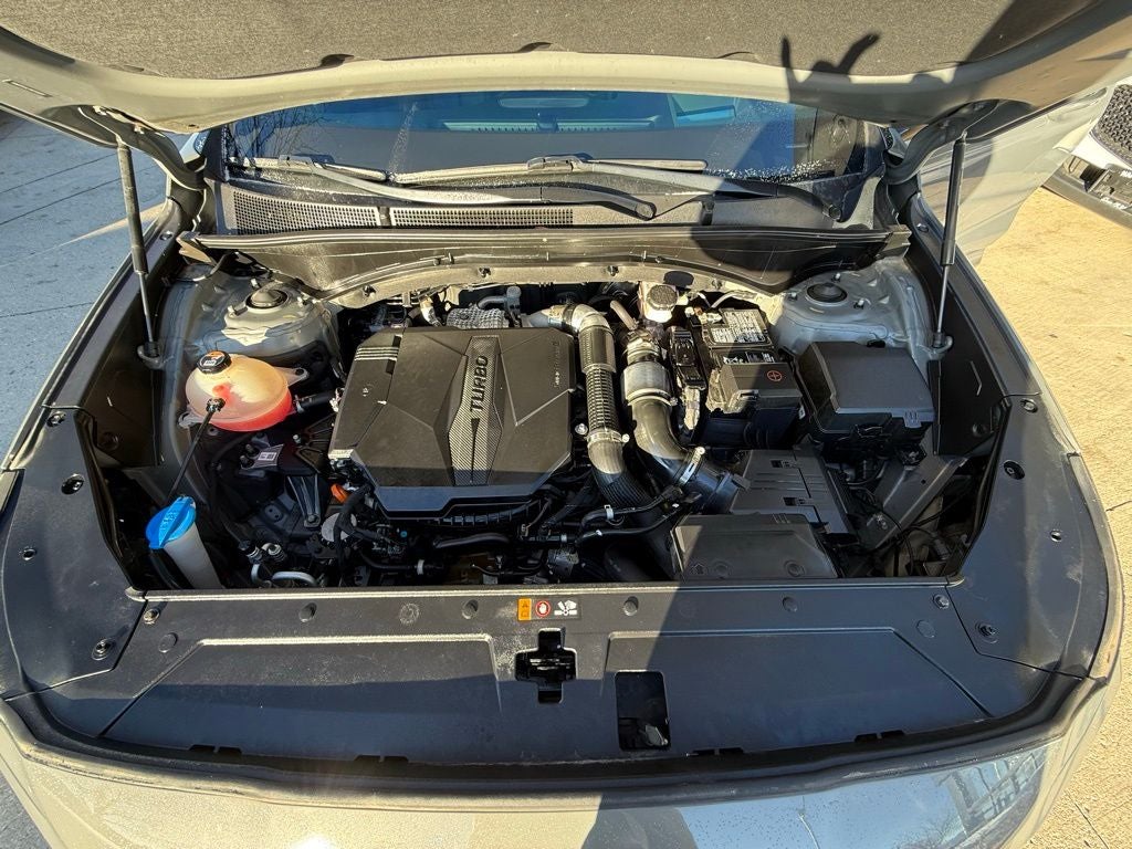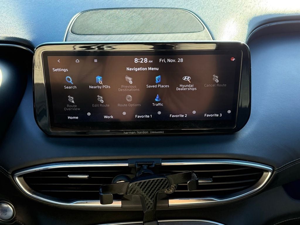 - Radio: AM/FM Harman Kardon Display Audio -inc: 10.25" display screen, Apple CarPlay and Android Auto, Bluetooth® hands-free w/wireless audio streaming, steering wheel audio and phone controls, dual front USB ports, SiriusXM, HD Radio, Blue Link connected car system, 12 speakers including subwoofer, external amplifier, Clari-Fi music restoration technology, QuantumLogic surround, navigation system w/traffic flow including incident data via HD Radio (HERE), rear seat quiet mode and wireless device charging