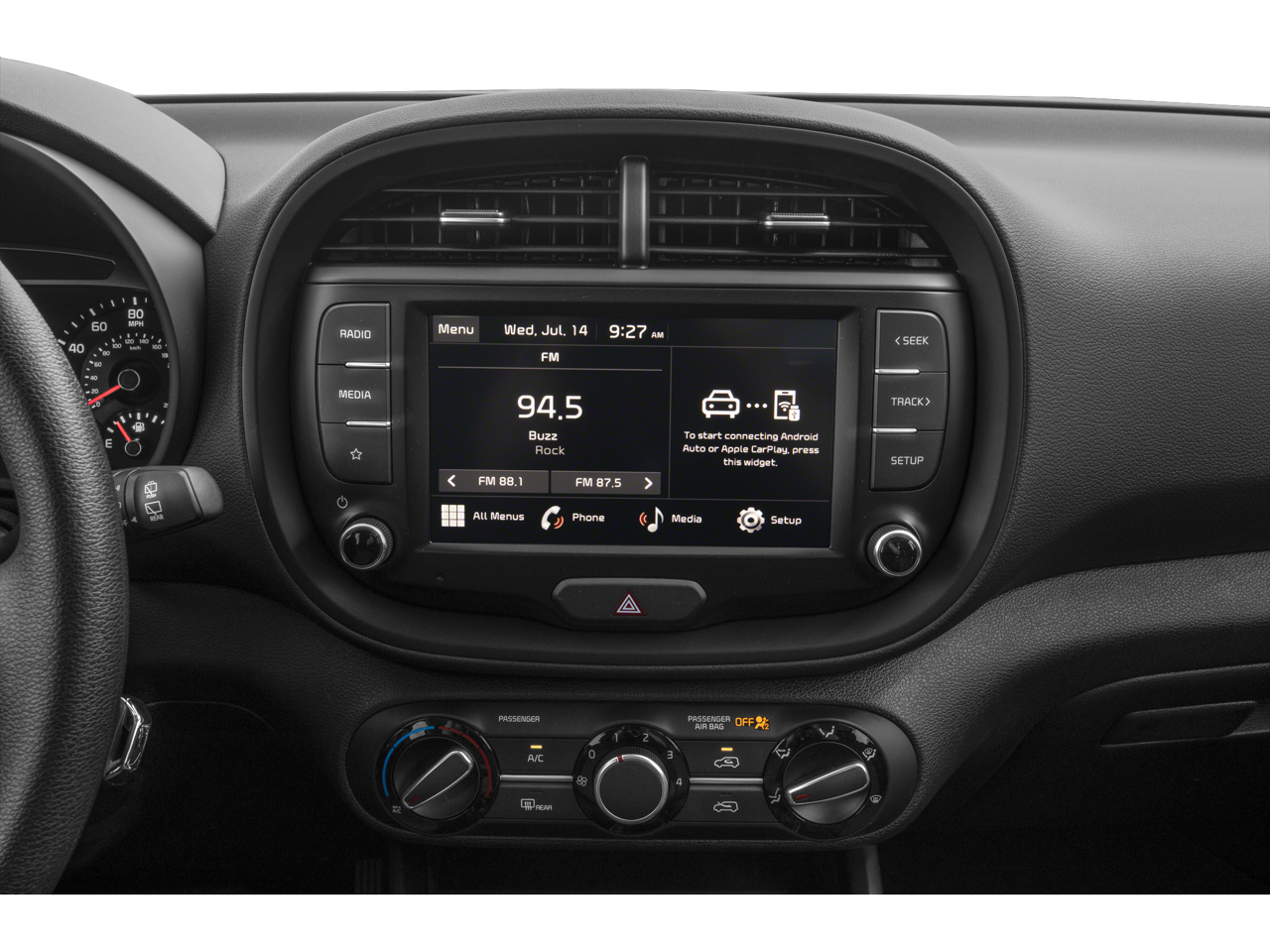 - Radio: AM/FM/MP3 Audio System -inc: 8.0" color touch screen, 6 speakers, support for Android Auto and Apple CarPlay, USB input, audio remote control, Bluetooth® hands-free and black shark fine type antenna