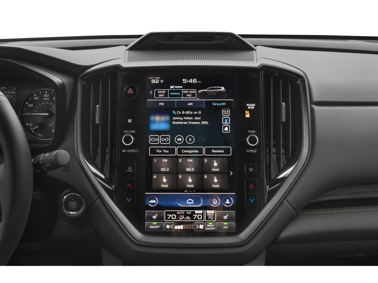 - Radio: Subaru STARLINK 11.6" Multimedia Nav System -inc: AM/FM stereo HD Radio, multi-touch gesture high resolution display screen, voice activated controls for radio and navigation, Bluetooth® audio streaming and hands-free phone connectivity w/SMS text messaging connectivity (refer to subaru.com for cell phone compatibility), Near Field Communication (NFC), TomTom navigation software w/What3Words, iPod control capability, SiriusXM All Access radio (4 months free trial/subscription required after), SiriusXM Traffic (3 years free trial/subscription required after), SiriusXM Travel Link (3 years free trial/subscription required after), smartphone integration for Android Auto and Apple CarPlay w/full screen view and wireless connection and STARLINK cloud applications, USB audio system update, TomTom navigation system update w/USB/Map Over The Air (MOTA) (3 years free map updates), steering wheel control switches for audio and Bluetooth®, harman/kardon quantum logic surround sound speaker system w/14 speakers, subwoofer and harman/kardon 792 watt equivalent maximum output amplifier, 3.5mm illuminated auxiliary input jack and illuminated USB A and C input/charge ports