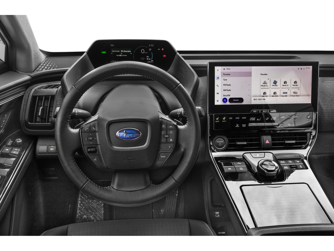 - Radio: Subaru 12.3" Multimedia System -inc: navigation system (navigation subscription required), AM/FM HD radio, Bluetooth® audio streaming and hands-free phone connectivity w/SMS text messaging (refer to subaru.com for cell phone compatibility), SiriusXM all access radio (4 months free trial included/subscription required after), Android Auto and Apple CarPlay w/full screen view and wireless connection, harman/kardon 11 speaker system w/576 watt equivalent maximum output amplifier, multi-touch gesture high resolution display screen, Near Field Communication (NFC), Subaru Solterra Connect intelligent assistant includes dual-zone voice control system w/driver and passenger headliner microphone, steering wheel talk switch, cloud navigation operation, integrated steering operation (subscription required), USB/Over The Air (OTA) audio system updates, USB/Map Over The Air (MOTA) navigation system updates, steering wheel control switches for audio system and Bluetooth®, USB A input/charge port and illuminated dual USB C input/charge port