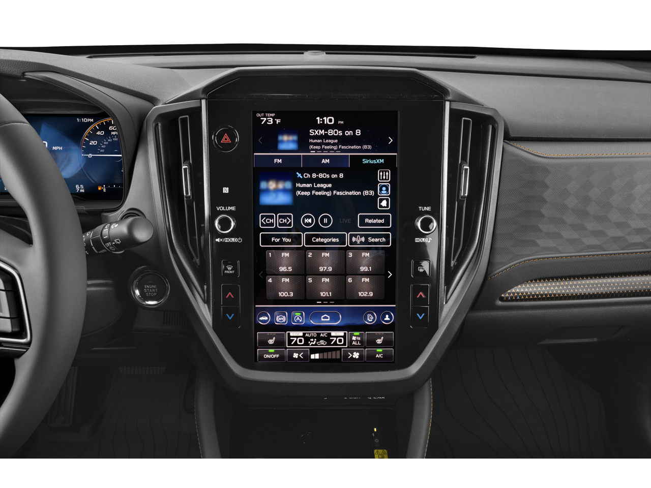 - Radio: Subaru 11.6" Multimedia Plus System -inc: valet mode, integrated center information display, AM/FM stereo HD Radio, multi-touch gesture high resolution display screen, voice activated controls, Bluetooth® audio streaming and hands-free phone connectivity w/SMS text messaging (refer to Subaru.com for cellphone compatibility), iPod control capability, smartphone integration: Android Auto and Apple CarPlay w/full screen view and wireless connection, SiriusXM satellite radio w/360L (free 4-month trial subscription included), USB and Over The Air (OTA) audio system update, steering wheel controls, 6 speakers, 3.5mm auxiliary input jack and roof mounted audio and satellite antenna